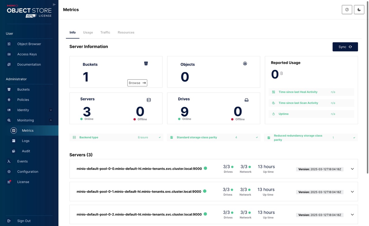 2025-03-16MinIO版本由RELEASE.2025-01-20T14-49-07Z更新至RELEASE.2025-03-12T18-04-18Z;MinIO Client版本由RELEASE.2025-01-17T23-25-50Z更新至RELEASE.2025-03-12T17-29-24Z;